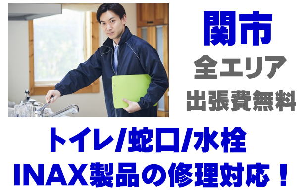 関市でINAX製品の修理業者をお探しなら当社までお気軽にお問い合わせください。トイレ便器タンクの故障、便座の修理、蛇口やシャワーの水漏れなどイナックス製品に関するトラブルなら何でもご相談ください。